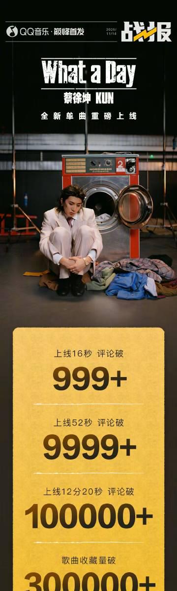 Meanwhile, back in mainland China, Cai Xukun’s ‘What a Day’ is absolutely shattering records. Let’s break down the mind-blowing stats: 🎵 16 seconds after release—comments blasted past 999+. 🎵 52 seconds in—comments soared over 9,999+. 🎵 Just 12 minutes and 20 seconds later—comments smashed the 100,000+ mark. And that’s not all—the song racked up over 300,000 collections and dominated FIVE charts on its debut day, including the Trend Chart and New Song Real-time Chart. Fans are calling it an ‘instant utopia’ of musical brilliance!